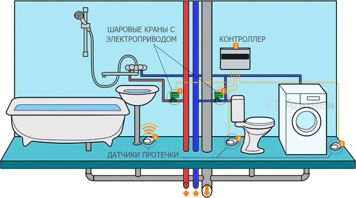 Многие даже и не знают, что существуют системы защиты от потопа, которые призваны только при первоначальном появлении воды в зоне размещения датчика, осуществить полное закрытие вводных кранов в квартиру на стояках в течении 10 секунд, тем самым предотвратить причинение материального ущерба хозяевам квартиры, а также людям, живущим несколькими этажами ниже!