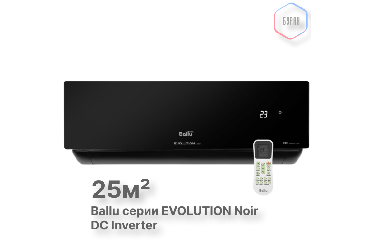 Этот внутренний блок инверторной мульти сплит-системы Ballu EVOLUTION Noir DC Inverter идеально подходит для помещений площадью до 25 м² .