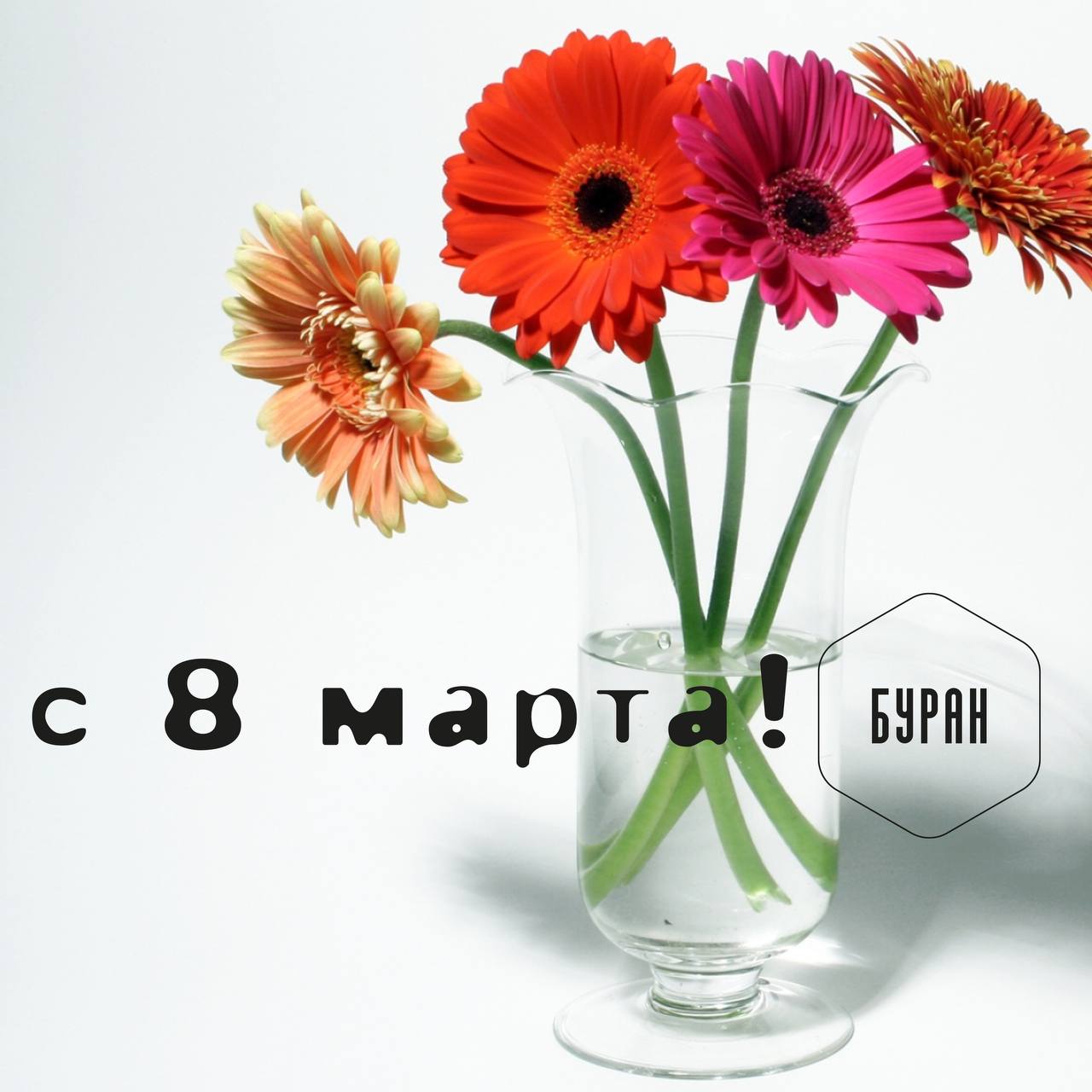 Дорогие женщины! Коллектив компании БУРАН поздравляет вас с 8 Марта! Желаем вам всегда оставаться прекрасными, умными, любимыми и самыми дорогими для своих близких. Пусть каждый день наполнен теплом, заботой, счастьем и радостью. Спасибо за ваше терпение, мудрость и любовь. Желаем вам успехов в работе, удачи в делах и крепкого здоровья! С праздником 8 Марта!
