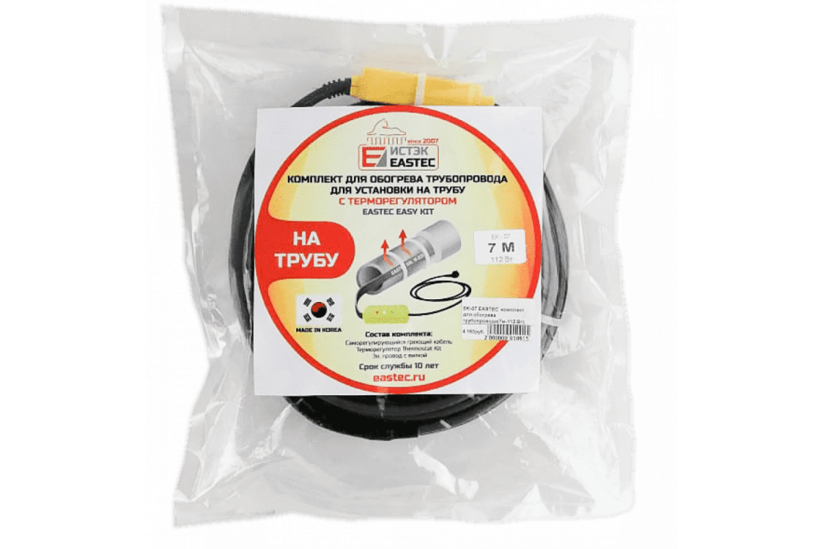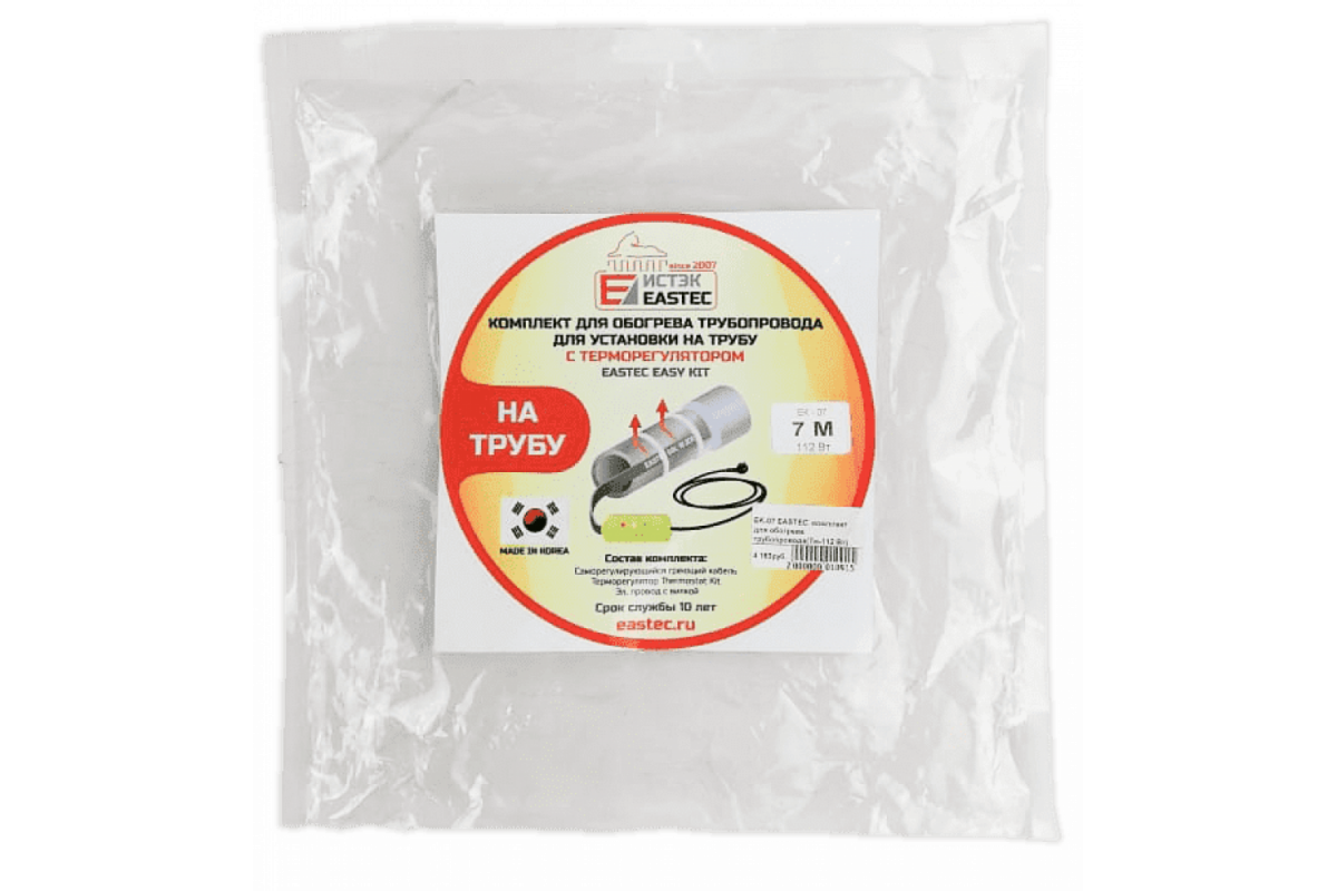 EK-06 EASTEC комплект для обогрева трубопровода(6м-96 Вт) — это высокоэффективный комплект для обогрева трубопроводов, предназначенный для предотвращения замерзания воды и других жидкостей в трубах в холодное время года. Благодаря использованию саморегулирующегося кабеля, система автоматически адаптирует свою мощность в зависимости от окружающей температуры, обеспечивая надежную защиту трубопроводов от промерзания и образования ледяных пробок.​