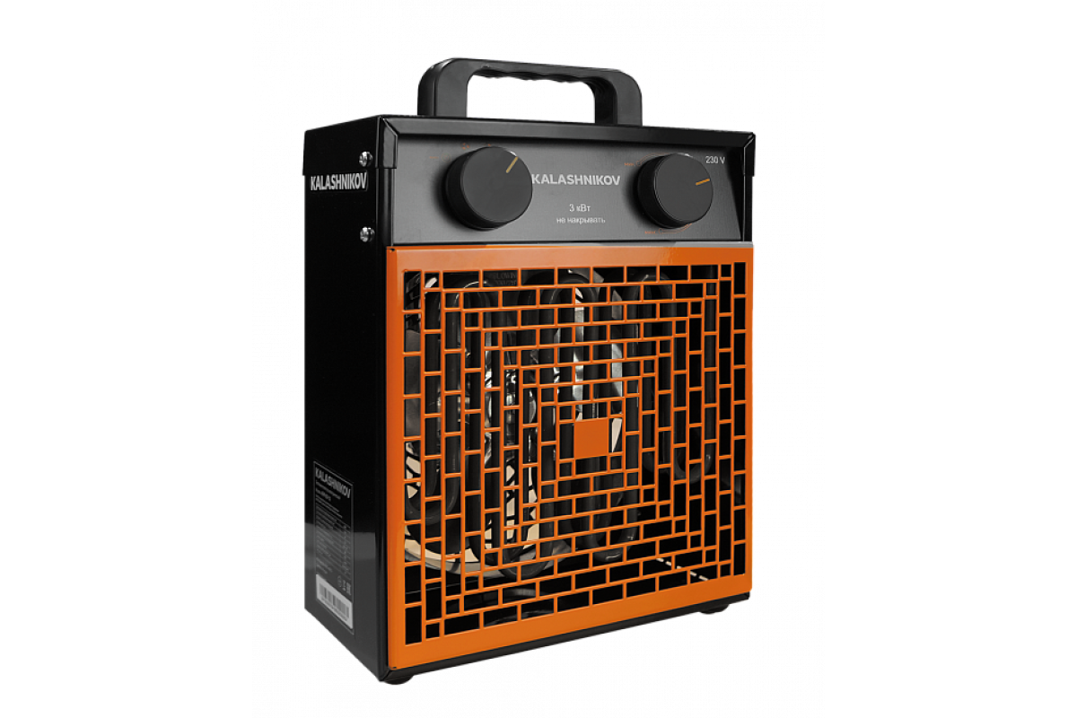 Тепловая пушка KALASHNIKOV KVF-E3-12 обладает мощностью 3 кВт, что делает её идеальным решением для эффективного обогрева различных помещений.