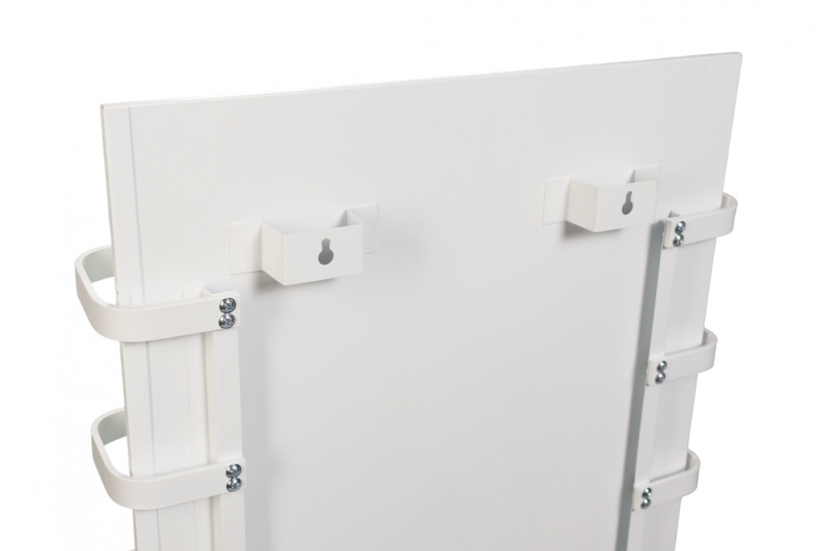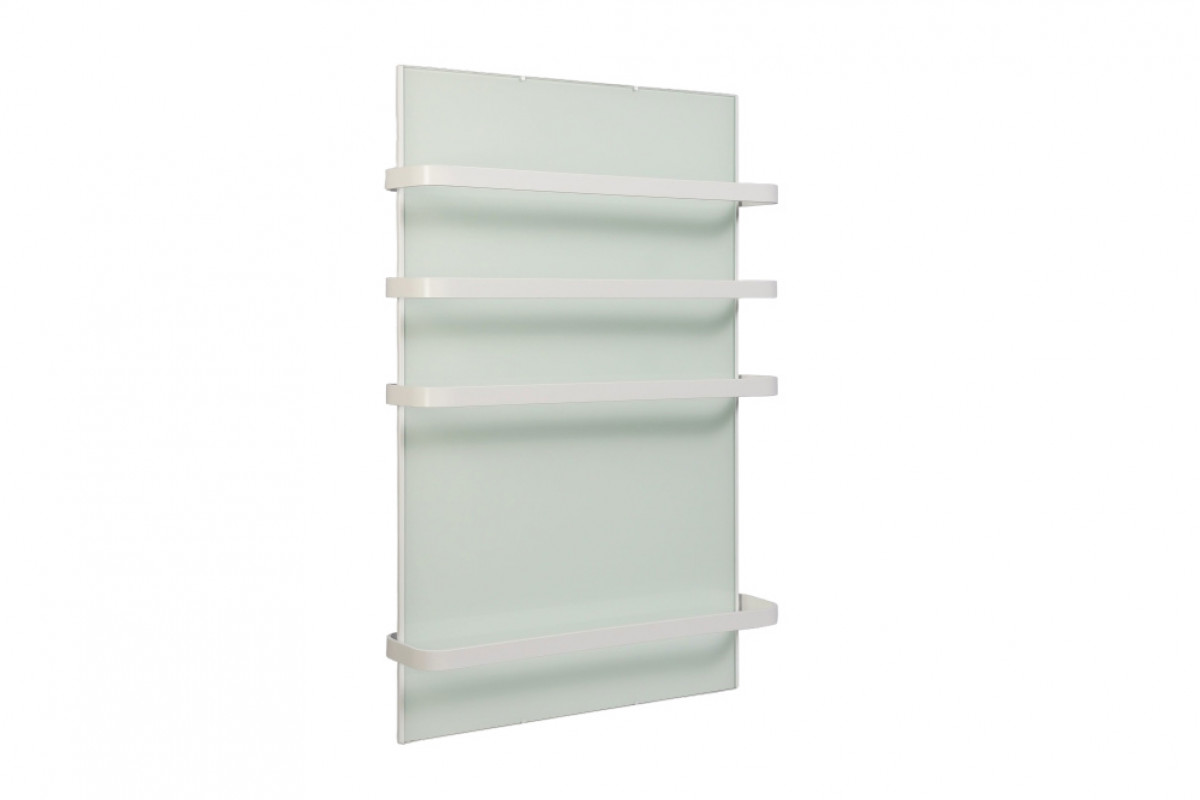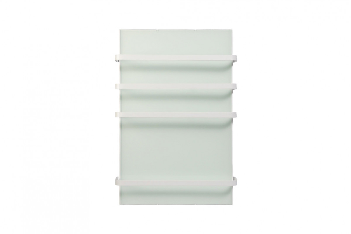 Корпус сушителя выполнен из нержавеющей стали, а греющая панель защищена противоударным закаленным стеклом толщиной 4 мм. Это гарантирует долговечность и безопасность прибора. На лицевой части расположены четыре окрашенных полотенцедержателя из алюминиевой полосы, позволяя разместить несколько вещей одновременно.