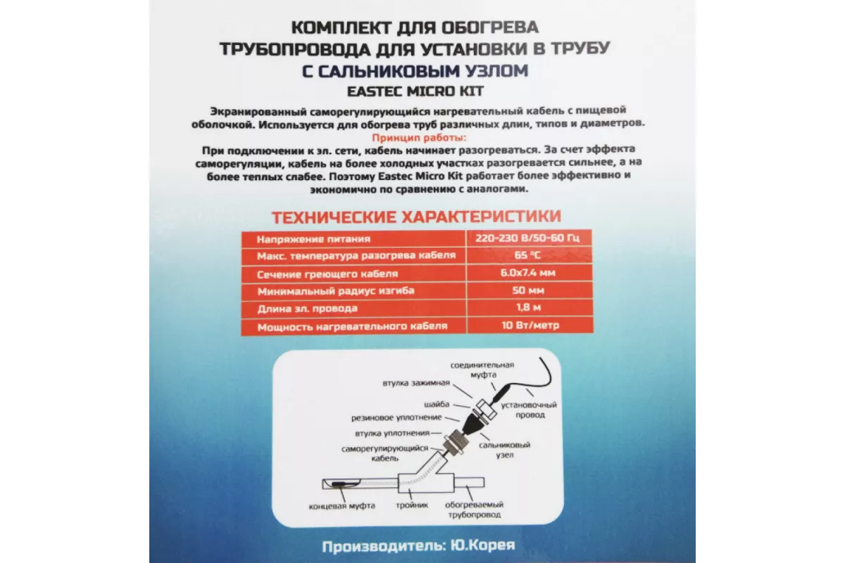 Почему стоит выбрать EMK-06 EASTEC комплект обогрева трубопровода для установки в трубу (6м-60 Вт)?