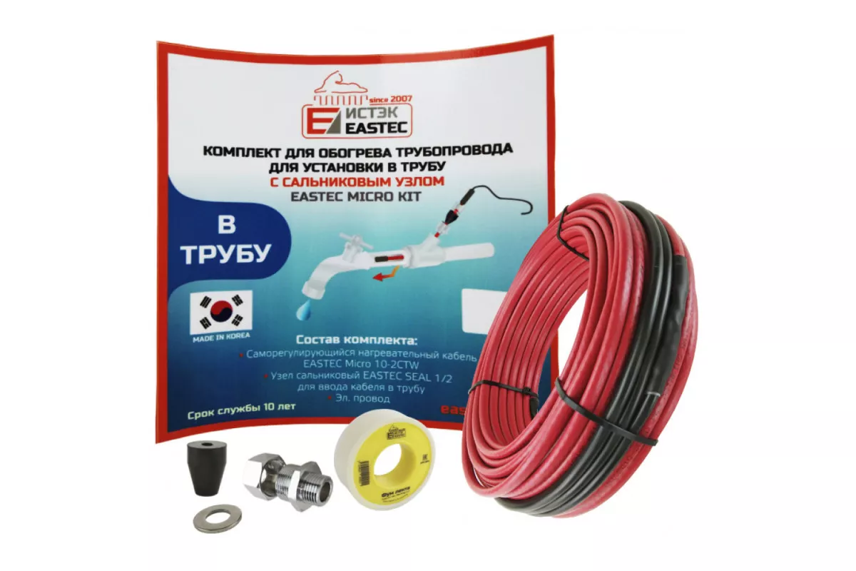 EMK-06 EASTEC комплект обогрева трубопровода для установки в трубу (6м-60 Вт) идеально подходит для использования в системах водоснабжения, включая: