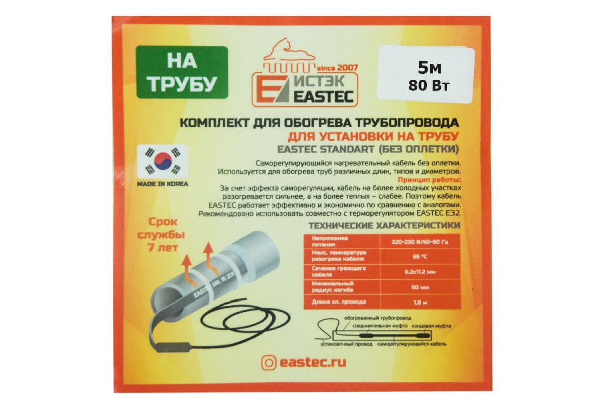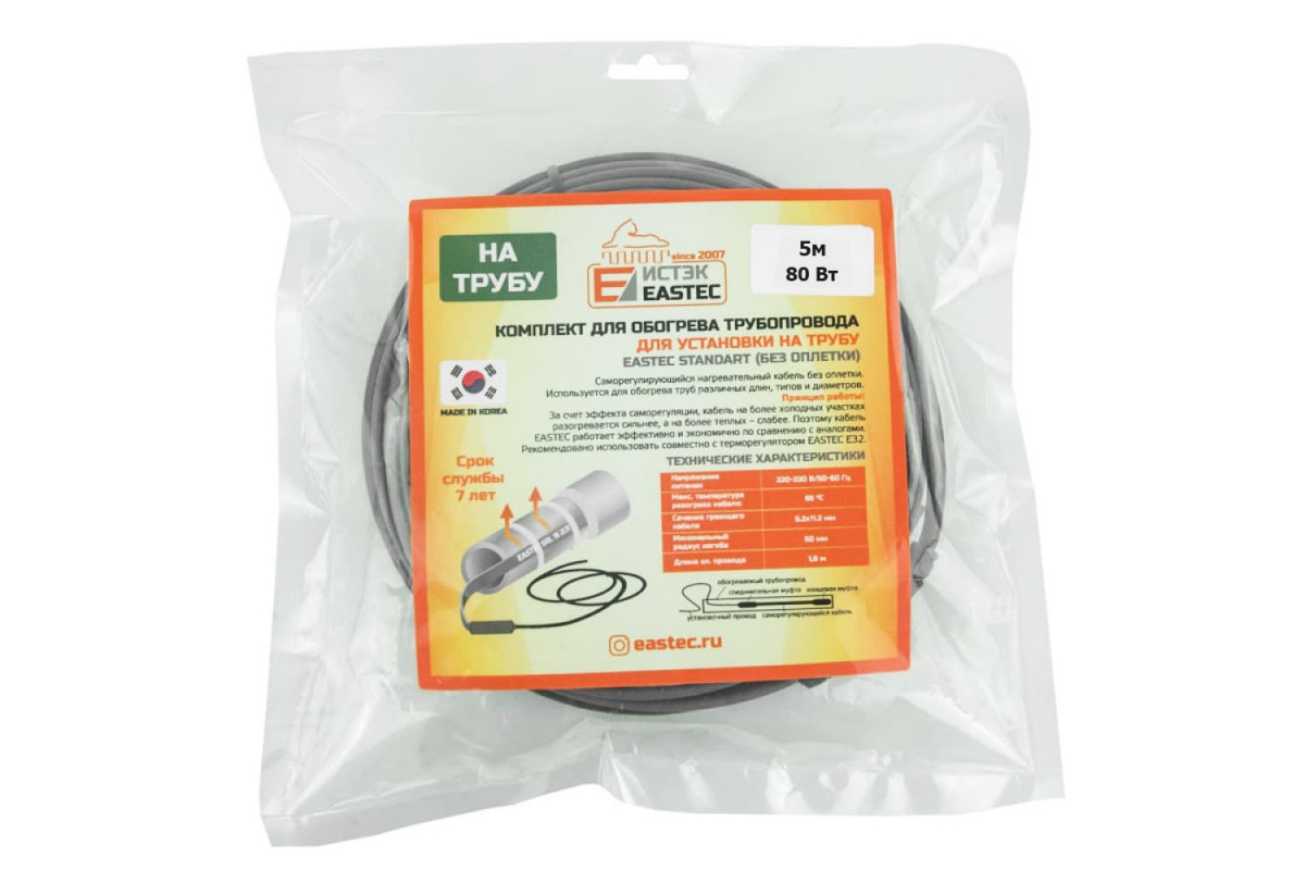ES-05 комплект для обогрева трубопровода Eastec Standart 5м-80Вт