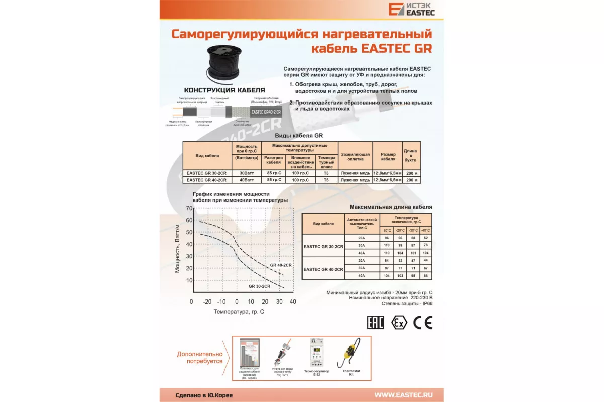 EASTEC GR 40-2 CR — надежное и эффективное решение для защиты вашего дома от негативных последствий зимних условий. Его саморегулирующаяся технология, УФ-защита и простота монтажа делают его идеальным выбором для обеспечения безопасности и комфорта.