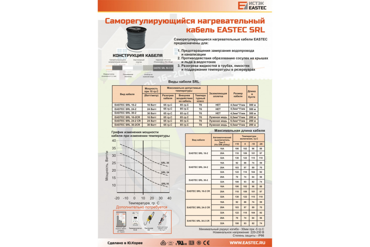 Греющий кабель EASTEC SRL16-2CR: