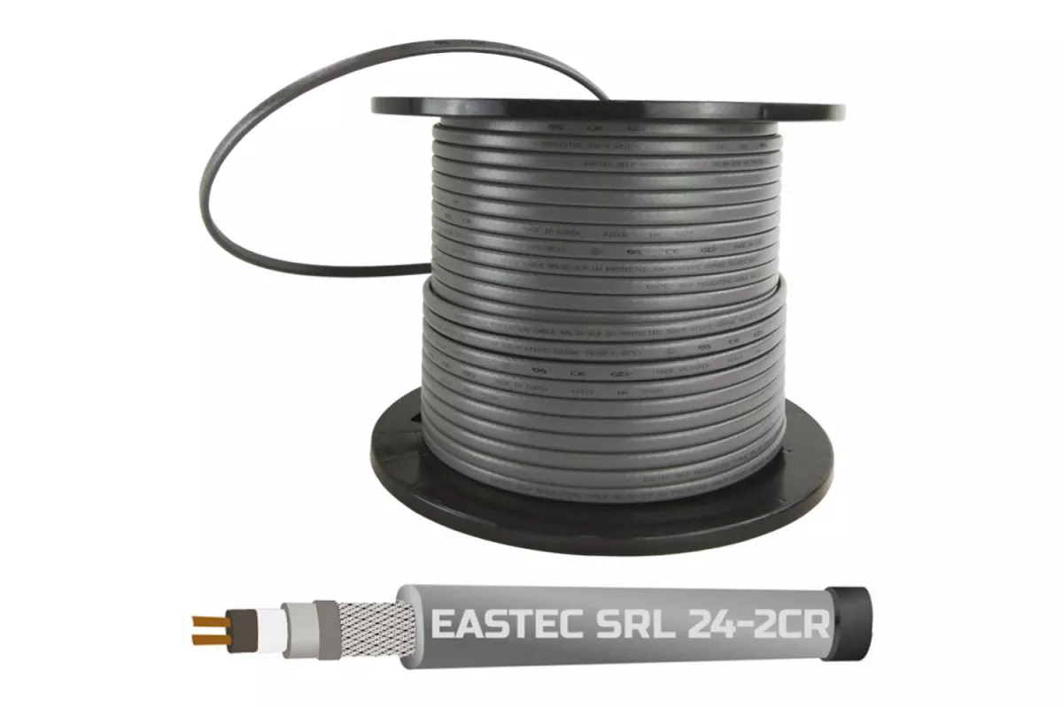 Экранированный самогреющийся кабель EASTEC SRL 24-2 CR мощностью 24 Вт применяется для защиты от перемерзания различных трубопроводов, водостоков, резервуаров и пр.
