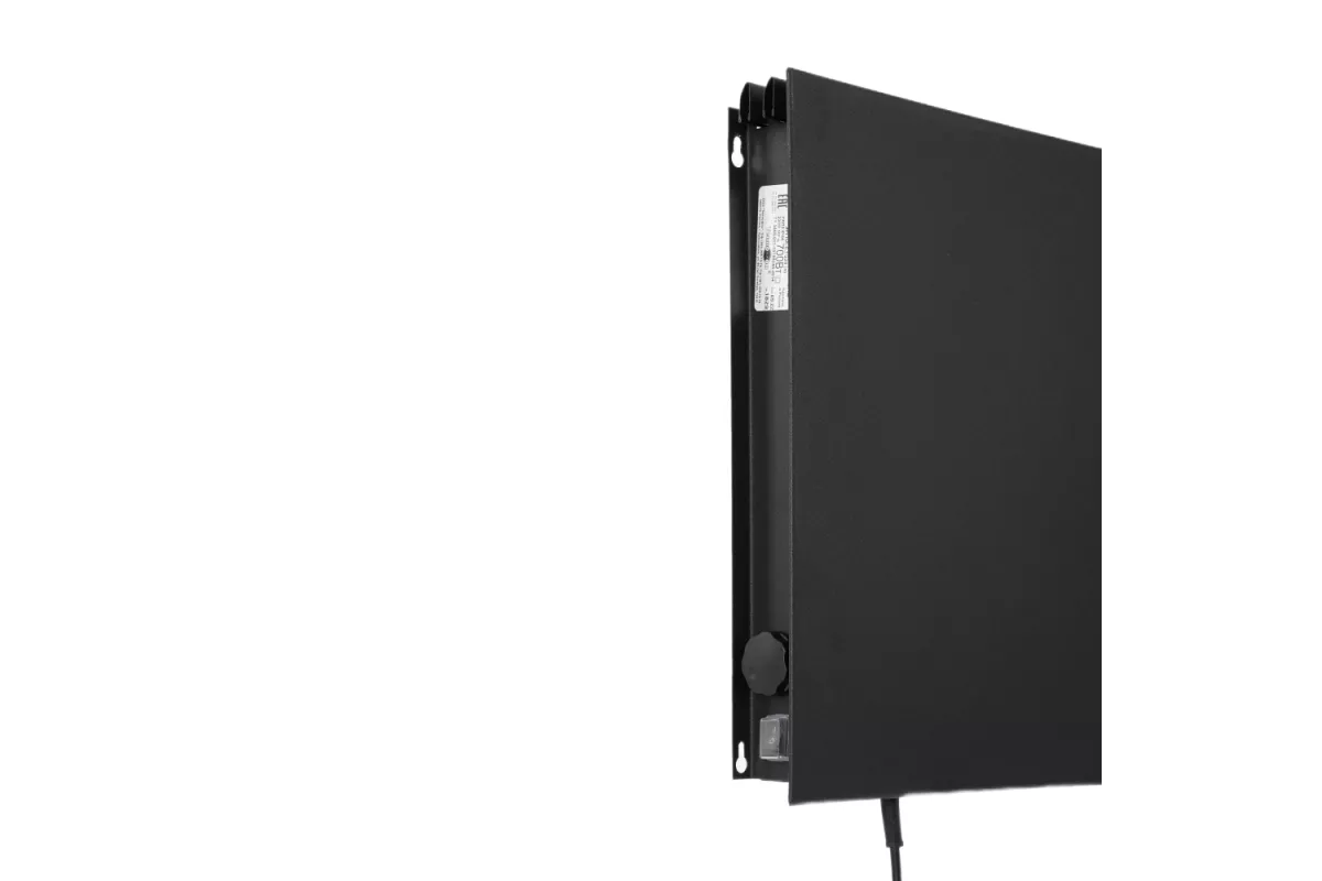 На торцевой поверхности расположена кнопка вкл/выкл и механический терморегулятор для более эффективного использования обогревателя.