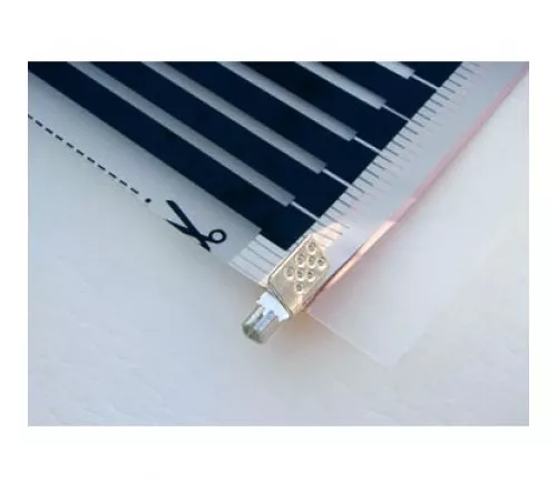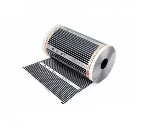 Инфракрасный пленочный теплый пол состоит из полос углеродного материала шириной около 1,5см, которые соединены между собой при помощи медных шин с серебряным покрытием, которые и проводят электрический ток. Нагревательный элемент заламинирован с двух сторон плотным полимером, который не задерживает инфракрасное излучение и обеспечивает отличную защиту от попадания влаги, пробоев и возгорания.