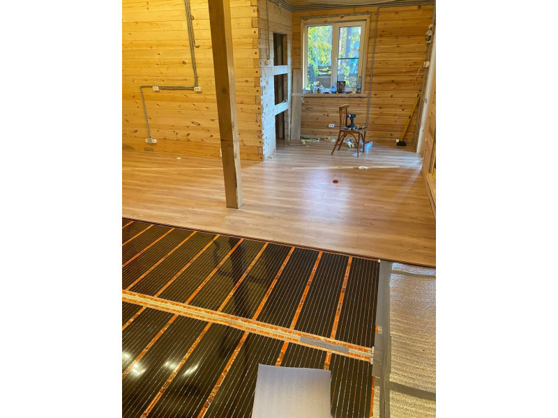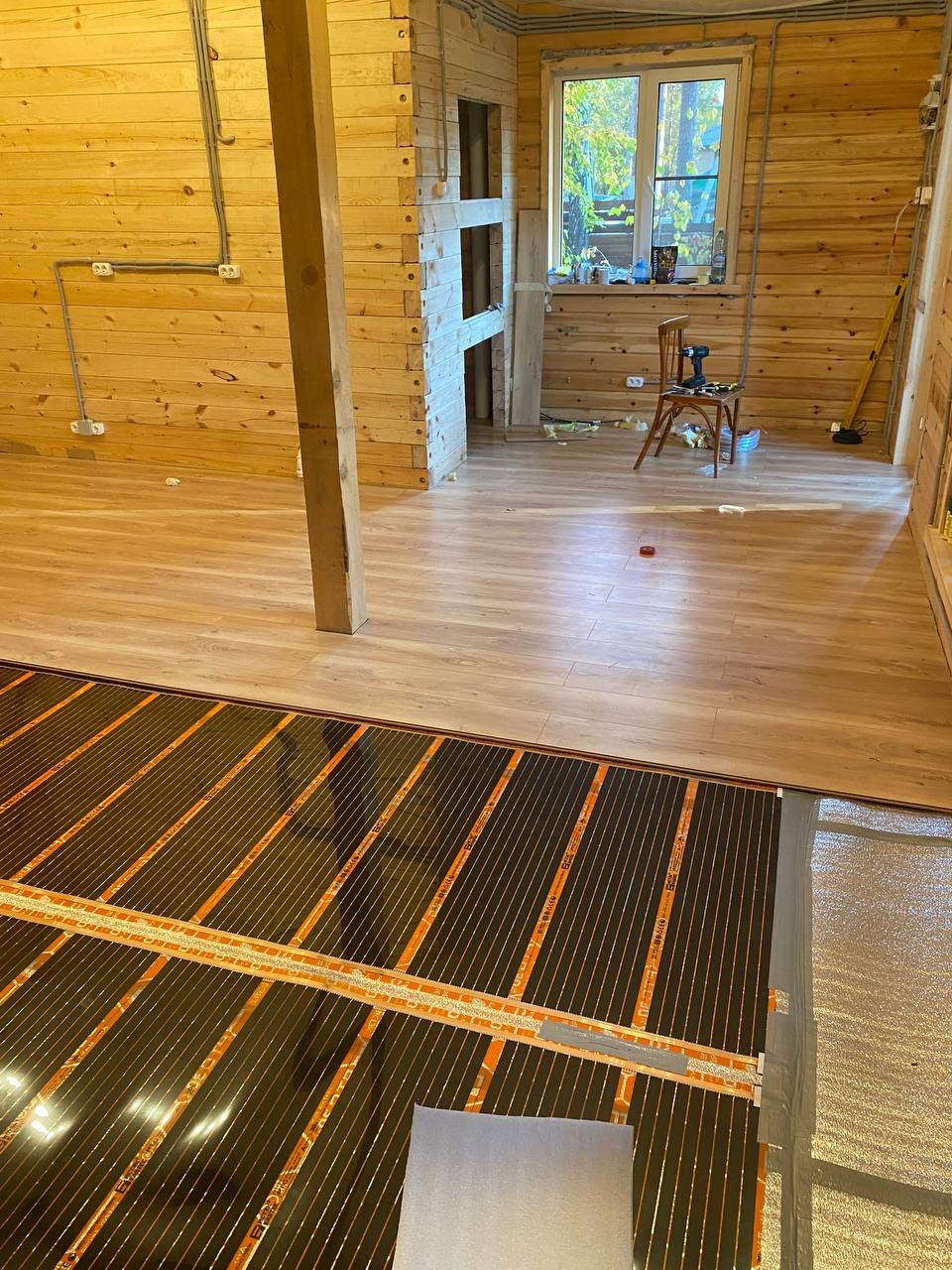 Дом из бруса, основной источник обогрева, пленочный теплый пол под ламинат.