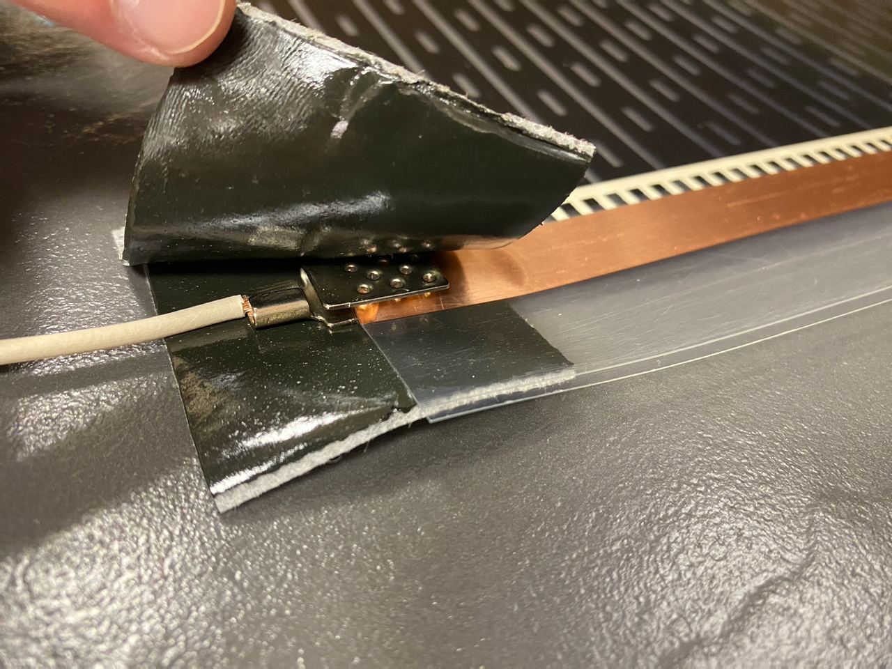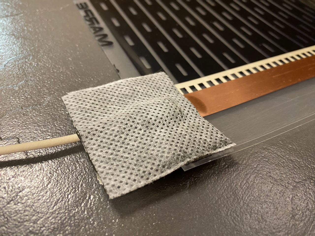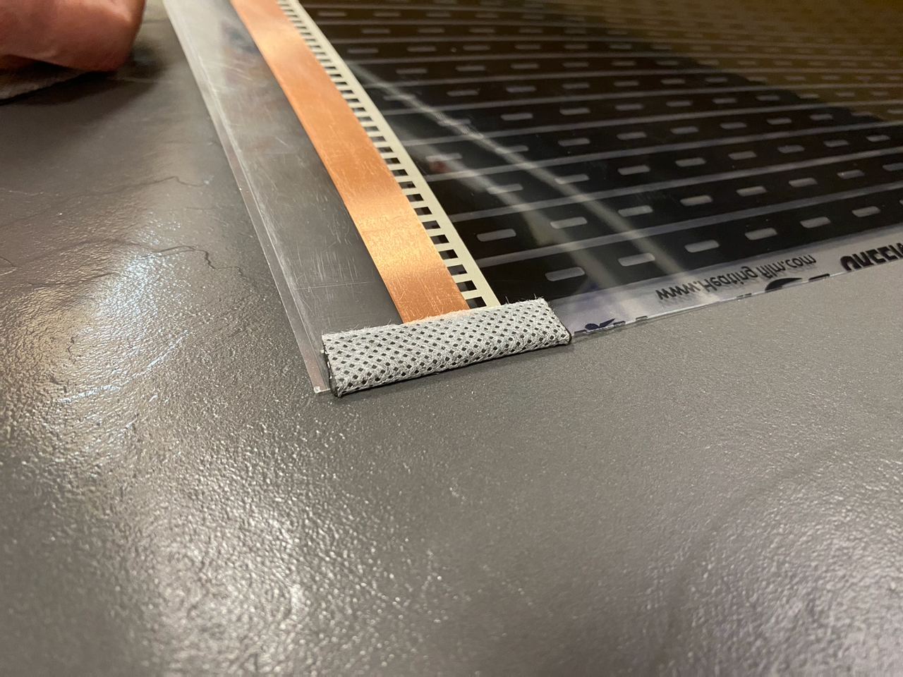 Таким образом при наличии минимально инструмента, мы соединили пленочный пол с проводом и выполнили изоляцию всех открытых токоведущих элементов.