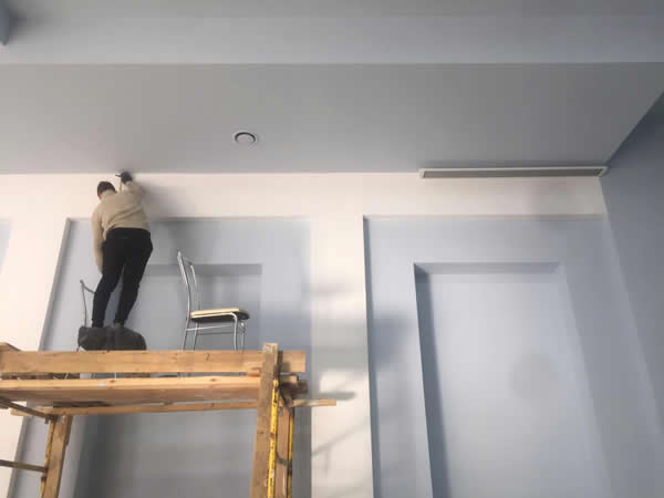 При проводке кабелей, чтобы не портить внешний вид помещения, их укладывали в короб из гипсокартона. Это было требование заказчика.