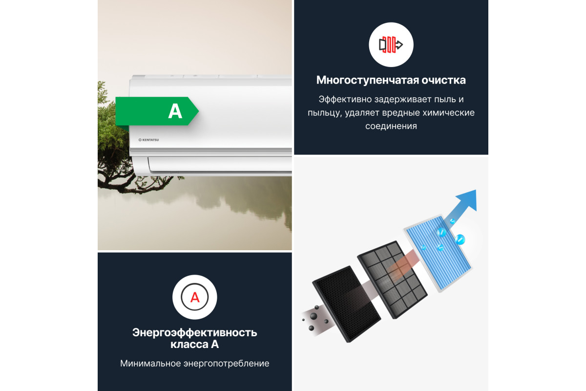 Выбор правильного кондиционера гарантирует комфортный микроклимат в вашем доме или офисе. Kentatsu YUKI Inverter сочетает в себе современные технологии, высокую энергоэффективность и экологичность благодаря использованию хладагента R32 и роторных компрессоров GMCC. ​