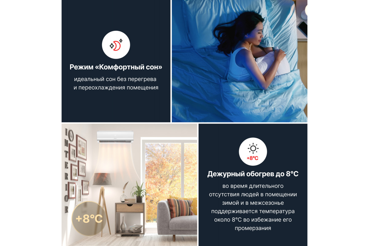 • Режимы работы: охлаждение, обогрев, осушение воздуха.​
