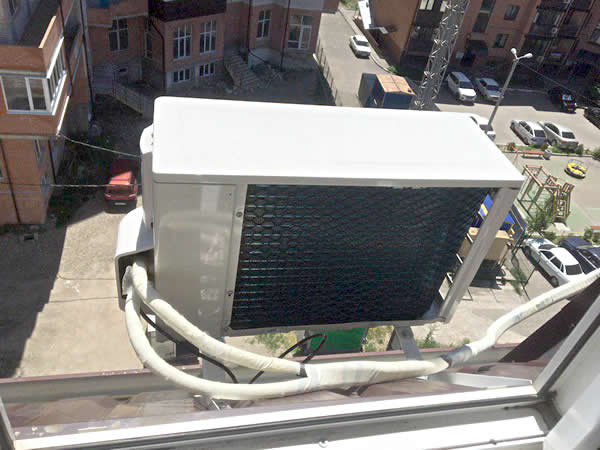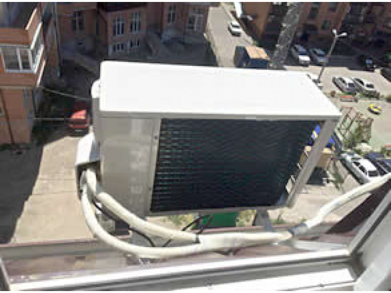 Внешний блок закреплен под окном, доступ к нему открыт. Это удобно и для монтажа, и для его дальнейшего обслуживания.