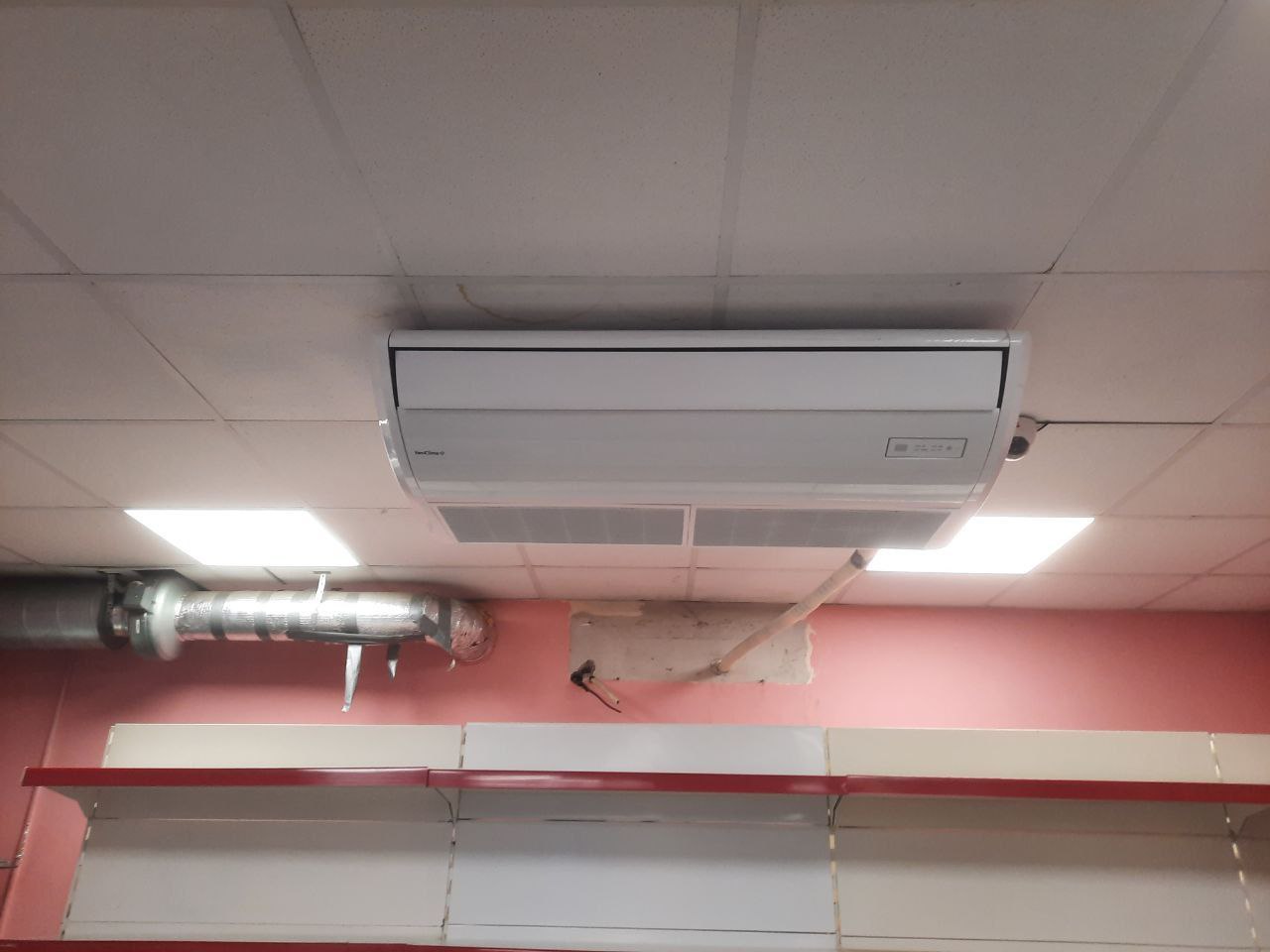 После осмотра объекта приняли решение демонтировать не справляющееся оборудование и установить два напольно-потолочных сплита NEOCLIMA NS/NU-36CT3 на 10 КВт по холодопроизводительности каждый. Монтаж проводила наша штатная бригада профессионалов и еще им немного помог наш родной экспедитор, за что ему огромное спасибо! Как итог через 8 часов после выезда на замер – комфортный климат в магазине «Фасоль», довольные сотрудники, довольные покупатели и собственник магазина.