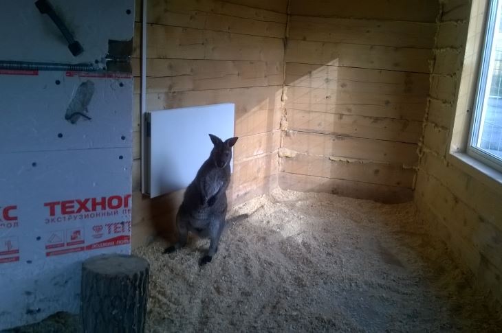 В настоящий момент ситуация изменилась. В местах постоянного зимнего проживания животных были установлены подвесные потолочные инфракрасные обогреватели марки Almac, а для кенгуру были смонтированы настенные обогреватели марки Теплофон. Обогреватели не занимают много места, не мешают животным, безопасны.