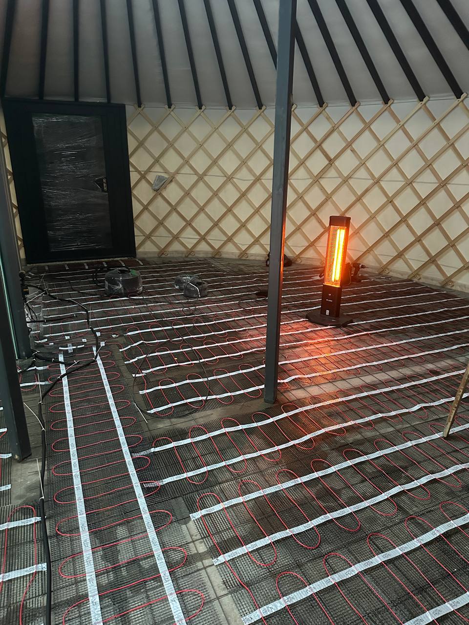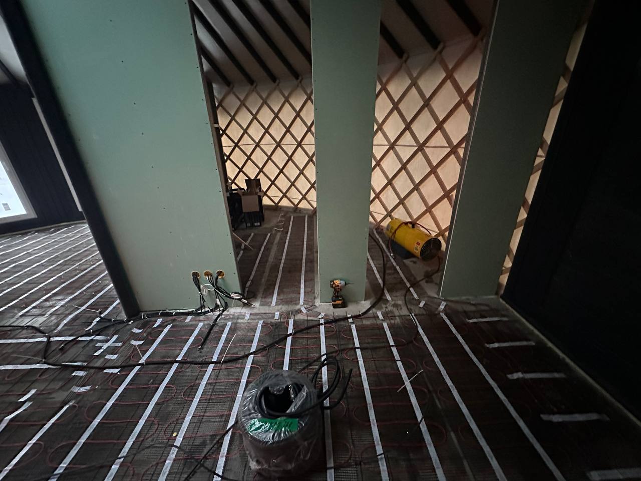 Для юрт был выбран продукт премиум-класса – полы бренда Russian Heat Pro, обладающие повышенной мощностью. Это решение позволяет использовать тёплый пол как основной источник тепла даже в холодное зимнее время. Данная система отличается высокой энергоэффективностью, долговечностью и стабильной работой в условиях переменной нагрузки.