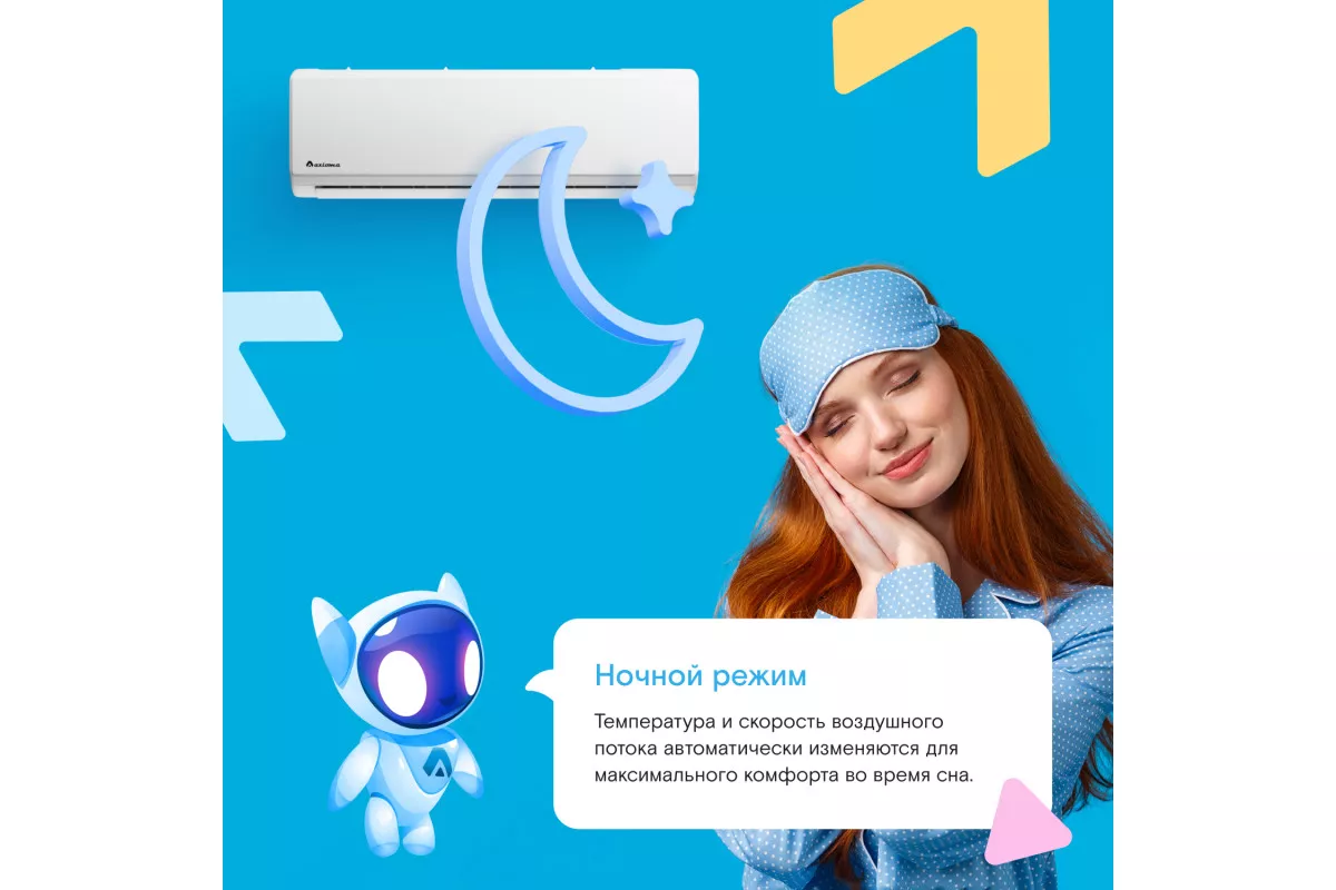 Ночной режим: автоматическая настройка температуры и скорости вентилятора для комфортного сна.