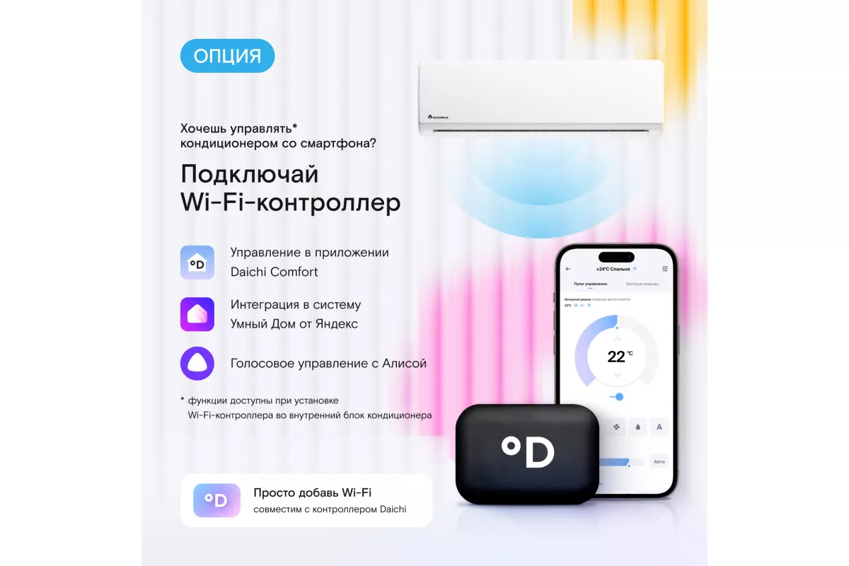 Wi-Fi Ready: возможность удаленного управления через смартфон при установке дополнительного модуля.