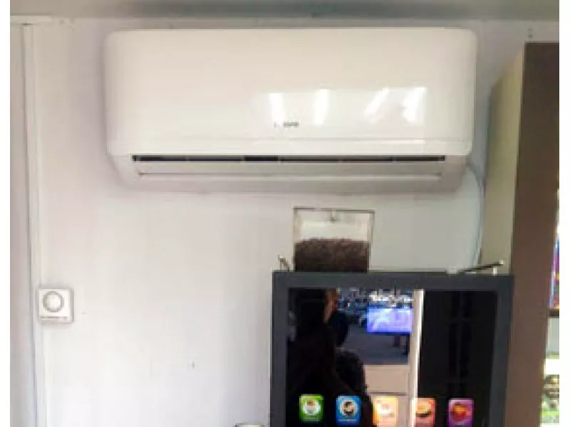Настенная сплит-система Lessar LS-H07KPA2 аккуратно смонтирована в подсобном помещении торгового павильона, г.Краснодар.