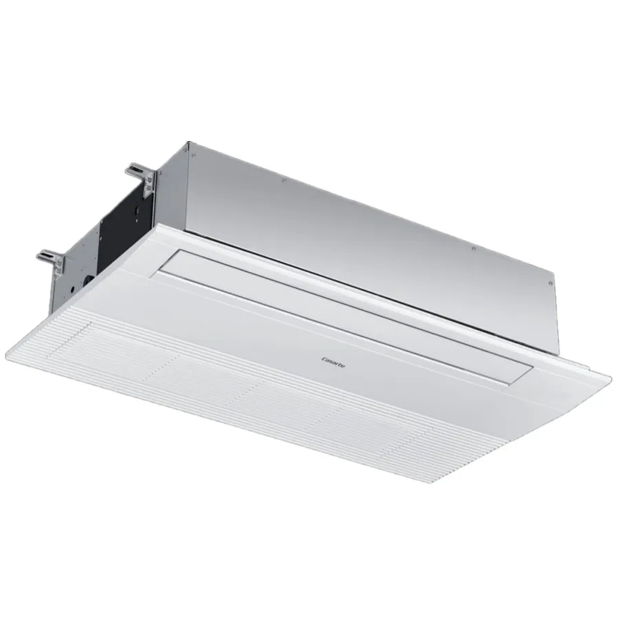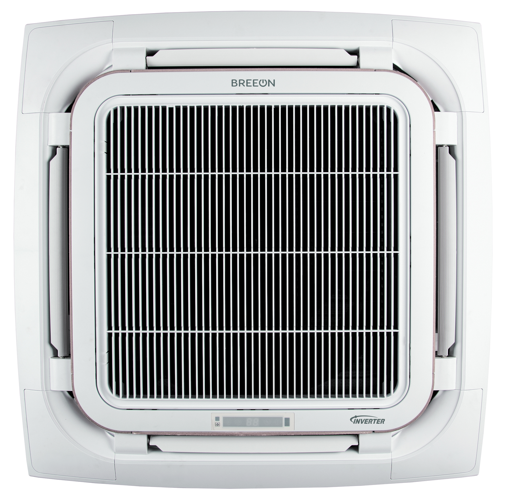 - Кассетные кондиционеры — идеальны для подвесных потолков в офисах и торговых залах.