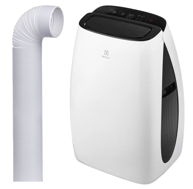 Это напольный кондиционер, который можно легко перемещать между комнатами. Он не требует внутреннего блока и сплит-системы, работает от обычной розетки 220 В и выводит горячий воздух через гофру в форточку или окно. Отличное решение для: