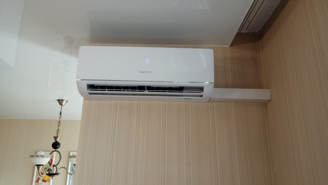 Подобрав технику, которая подошла клиенту визуально, по характеристикам и, конечно же, подошла в размеры простенка (Сплит-система Neoclima NS/NU - HAX09R), наша монтажная бригада ювелирно смонтировала оборудование.