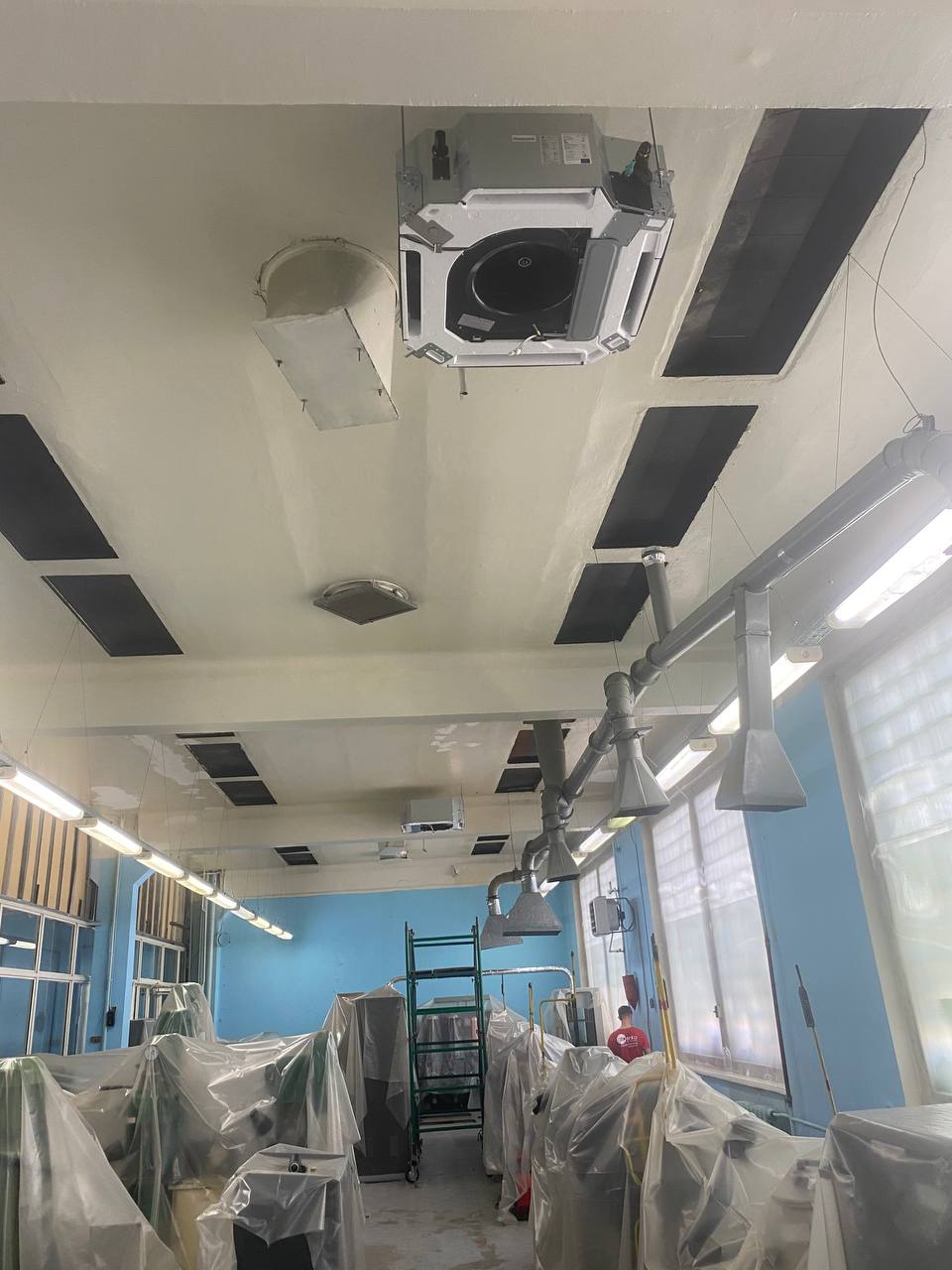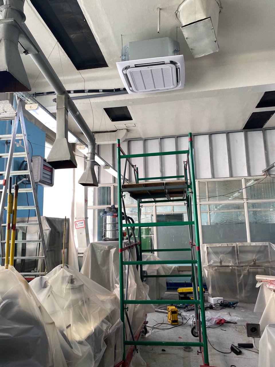 - Установка внутренних блоков: Фиксация кассетных кондиционеров в подготовленных местах.