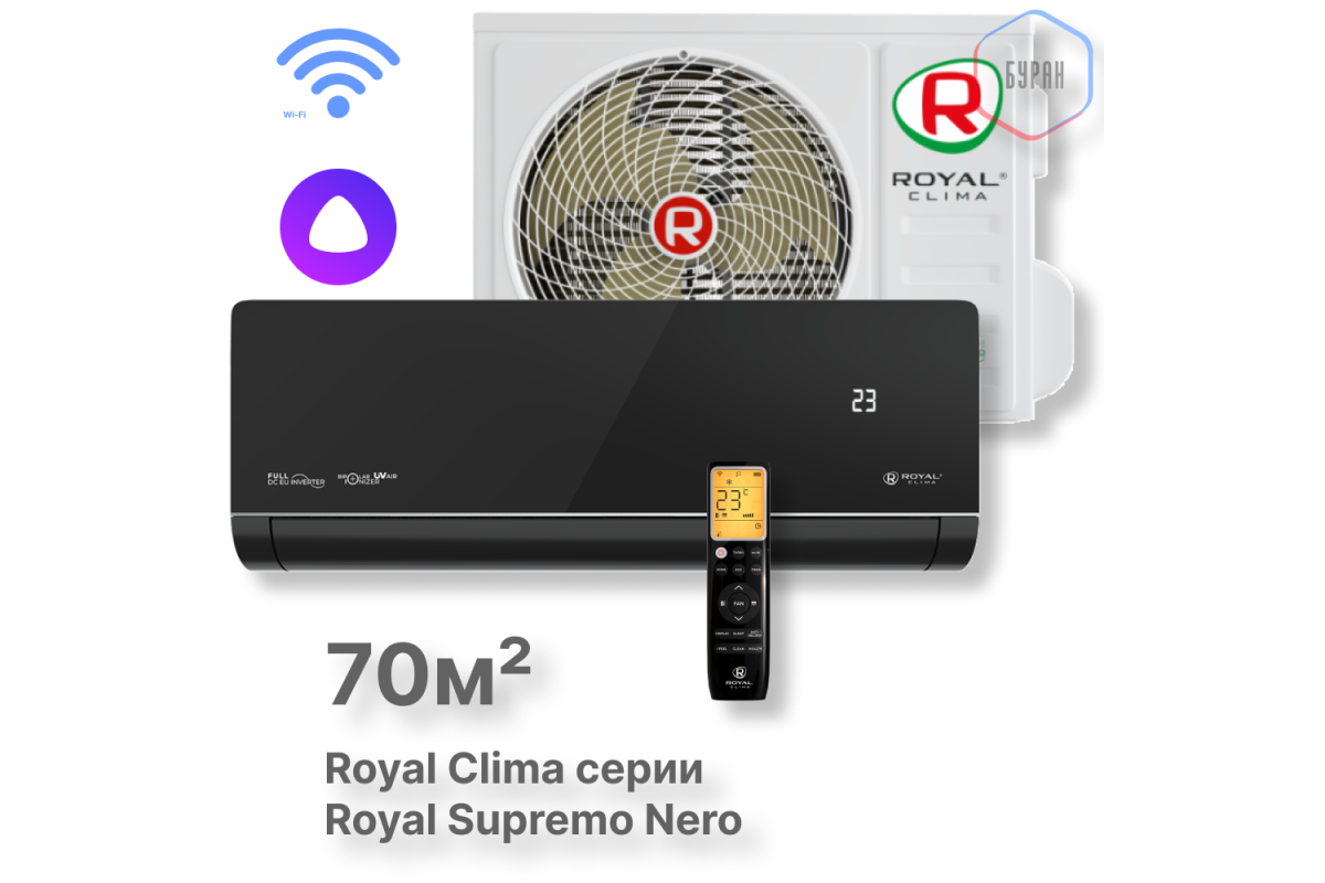 Инверторная сплит-система ROYAL SUPREMO NERO Full DC EU Inverter RCI-RSN75HN сочетает в себе передовые технологии, высокую производительность и элегантный дизайн, обеспечивая комфорт и уют в вашем доме или офисе.