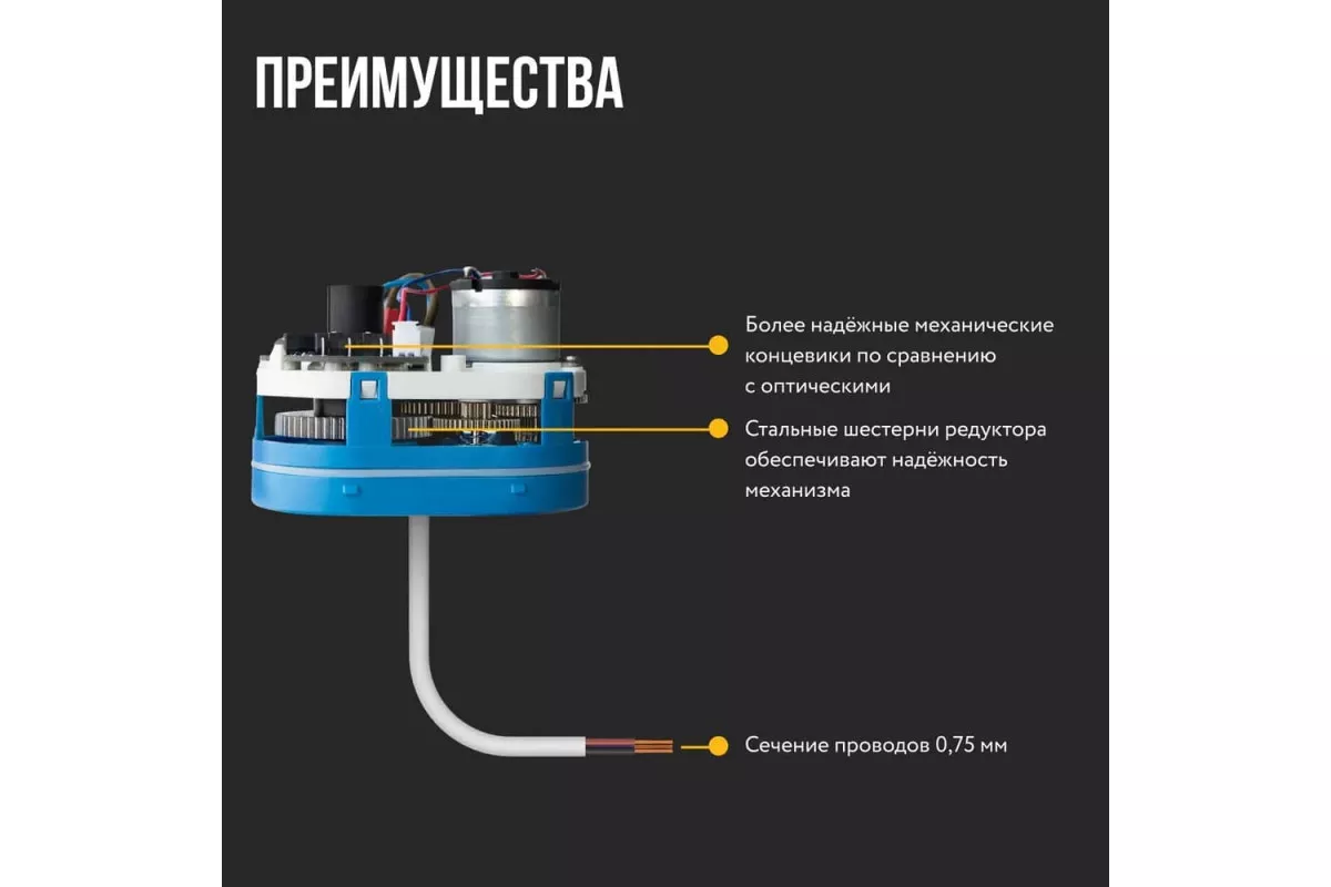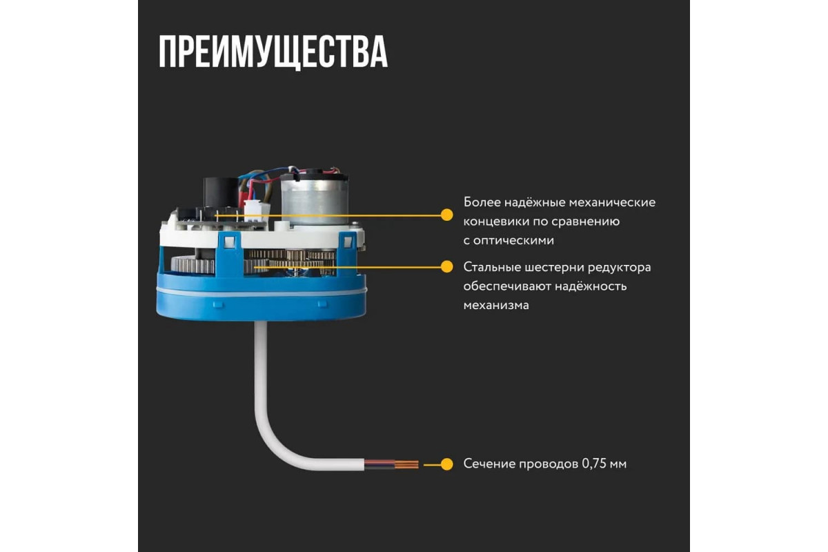 • Стальные шестерни редуктора обеспечивают надёжность механизма.