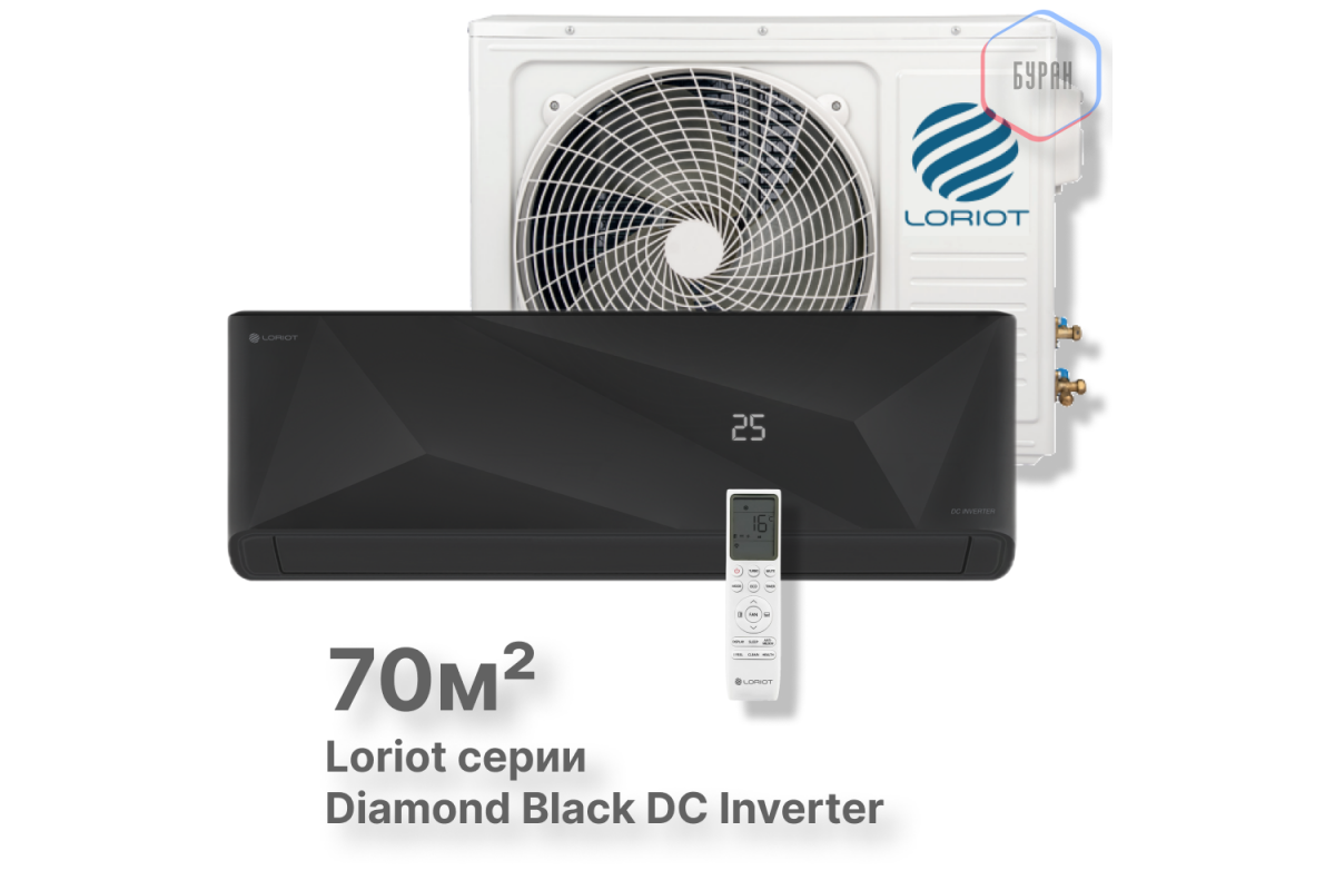 Кондиционер Loriot Diamond Black DC Inverter LAC-24MDI предназначен для помещений площадью до 70 м², обеспечивая эффективное охлаждение и обогрев небольших комнат и офисов.​