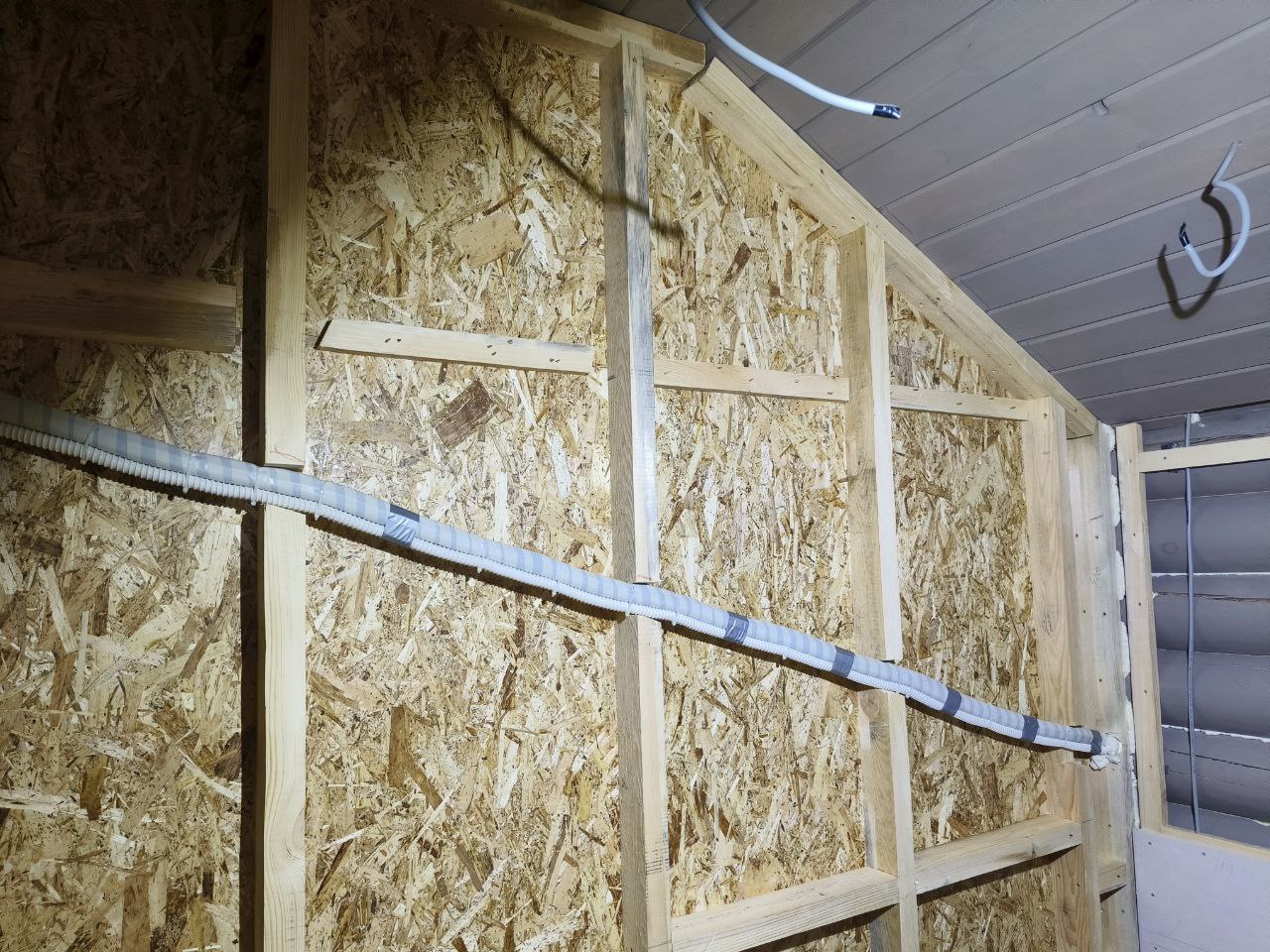 Проложили фреоновые трассы, дренажные системы и силовые кабели в стенах, чтобы после финишной отделки всё выглядело максимально эстетично.