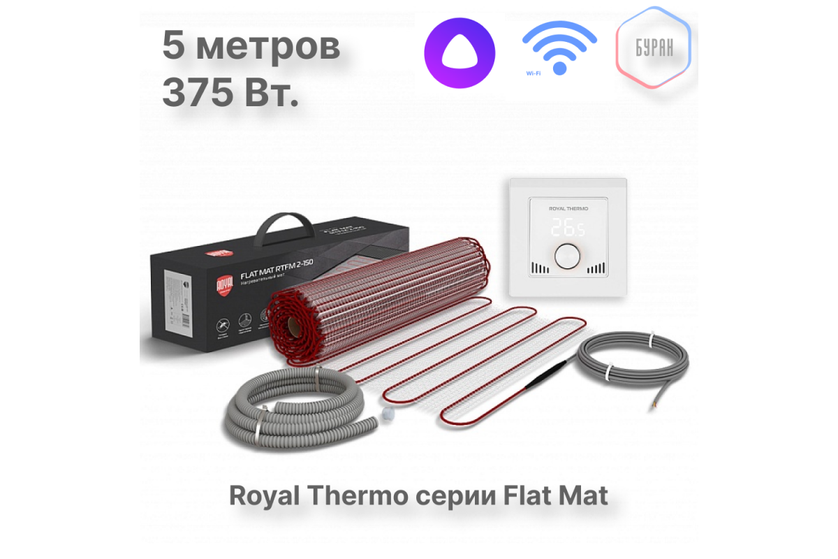 Мат нагревательный Royal Thermo Flat Mat RTFM 2-150-2,5 с терморегулятором RTO-16 – это удобное и экономичное решение для обогрева пола. Он быстро монтируется, безопасен в эксплуатации и обеспечивает равномерный комфортный нагрев.