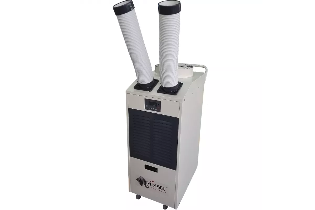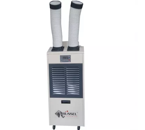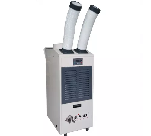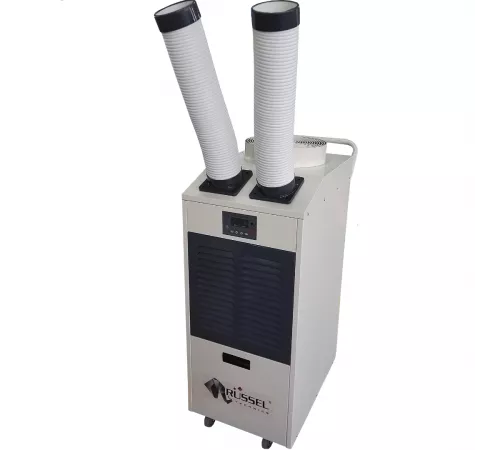 Мобильный промышленный кондиционер RŬSSEL Technics RPAC-16H представляет собой единый корпус, установленный на колеса для передвижения. Основными частями кондиционера являются: испаритель (расположен на передней панели, закрытый фильтром и защитной решеткой), конденсатор (расположен сзади кондиционера и закрыт решеткой), компрессор, вентиляторы конденсатора и испарителя, панель управления (расположена на передней панели кондиционера), ручка для передвижения, воздухораздающий патрубок, защитная решетка вентилятора конденсатора, сетевой шнур. Оборудование полностью заправлено хладагентом и готово к работе. Детальное описание кондиционера, инструкция по эксплуатации, обслуживанию и ремонту представлены в разделе Тех. Информация.