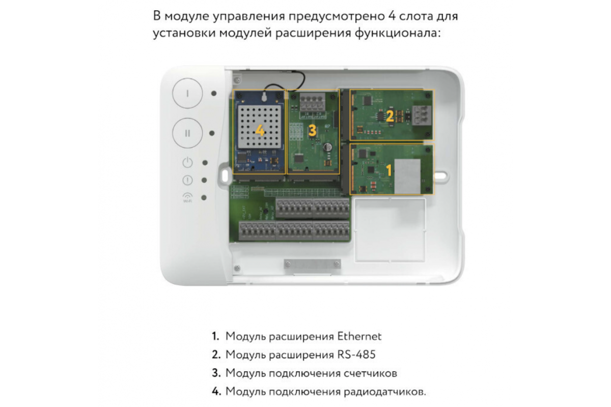 Модуль подключения радиодатчиков предназначен для организации соединения с беспроводными датчиками контроля протечки воды.