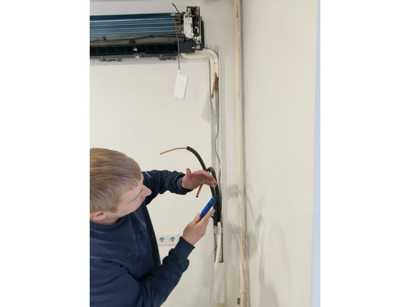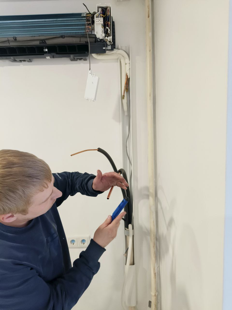 Прокладка межблочной трассы. Межблочная трасса — это система труб и проводов, которые соединяют внутренний и внешний блоки кондиционера. Важно правильно выполнить монтаж, чтобы избежать утечек фреона и обеспечить высокую эффективность работы системы.
