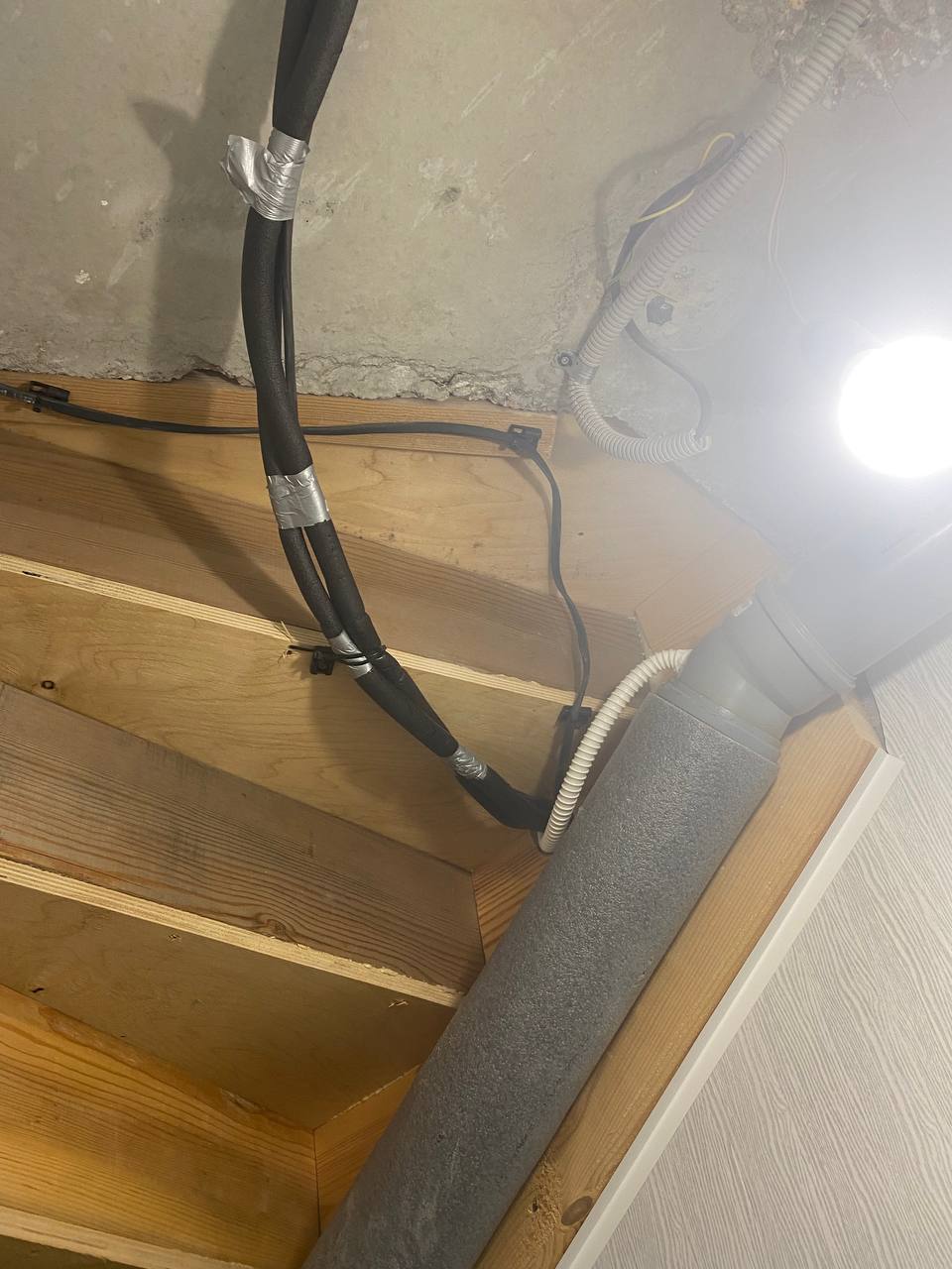 - Прокладку трубопроводов и электропроводки от внешнего блока на втором этаже.