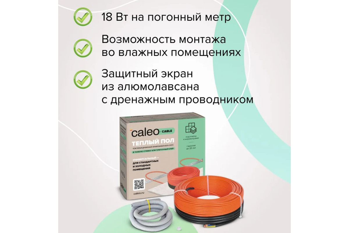 Особенности Нагревательная секция для теплого пола CALEO CABLE 18W 30м