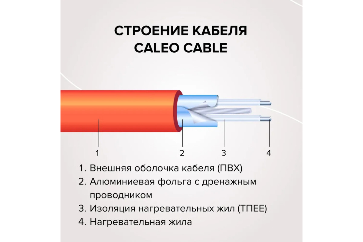 Строение Нагревательная секция для теплого пола CALEO CABLE 18W 30м
