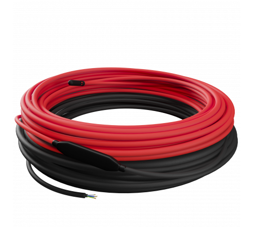 Двужильный кабель с линейной мощностью 100 Вт/м² обеспечивает равномерное распределение тепла. В отличие от одножильных аналогов, он не создает электромагнитных помех и удобнее в укладке (не требует возврата второго конца к терморегулятору).