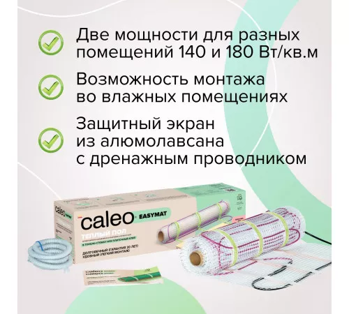 Нагревательный мат CALEO EASYMAT 140 Вт/м2 7,0 м2 – это идеальное решение для быстрого монтажа тёплого пола под плитку. Он сочетает энергоэффективность, безопасность и простую установку, делая ваш дом уютнее.