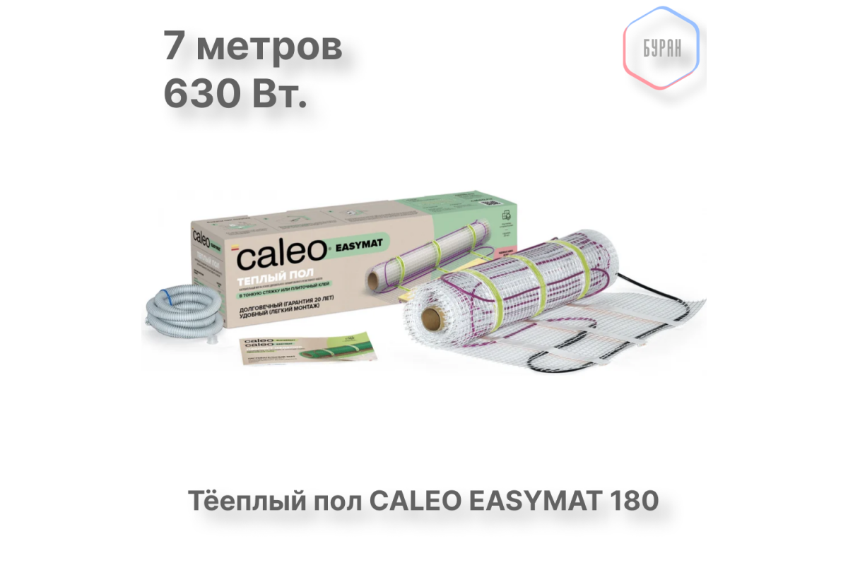 Нагревательный мат CALEO EASYMAT 180 Вт/м2 3,5 м2 — это эффективное решение для создания комфортного и равномерного обогрева пола в вашем доме. Он идеально подходит для установки под плитку, керамогранит и другие напольные покрытия. Благодаря своей конструкции и техническим характеристикам, этот мат обеспечивает быстрый нагрев и экономичное потребление энергии.