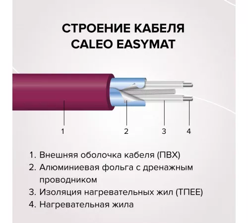 С удельной мощностью 180 Вт/м², CALEO EASYMAT эффективно обогревает помещение, при этом потребляя минимальное количество электроэнергии. Это делает его отличным выбором для основного или дополнительного отопления.