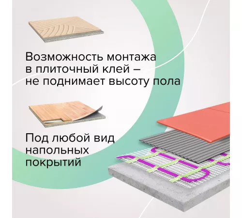 Благодаря равномерному распределению нагревательного кабеля на стекловолоконной сетке, мат обеспечивает стабильный и комфортный обогрев всей поверхности пола без перегревов и холодных зон.