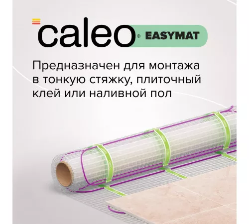 CALEO EASYMAT отличается удобством установки: его можно укладывать непосредственно в плиточный клей или тонкую стяжку, что сокращает время монтажа и снижает затраты на дополнительные материалы.