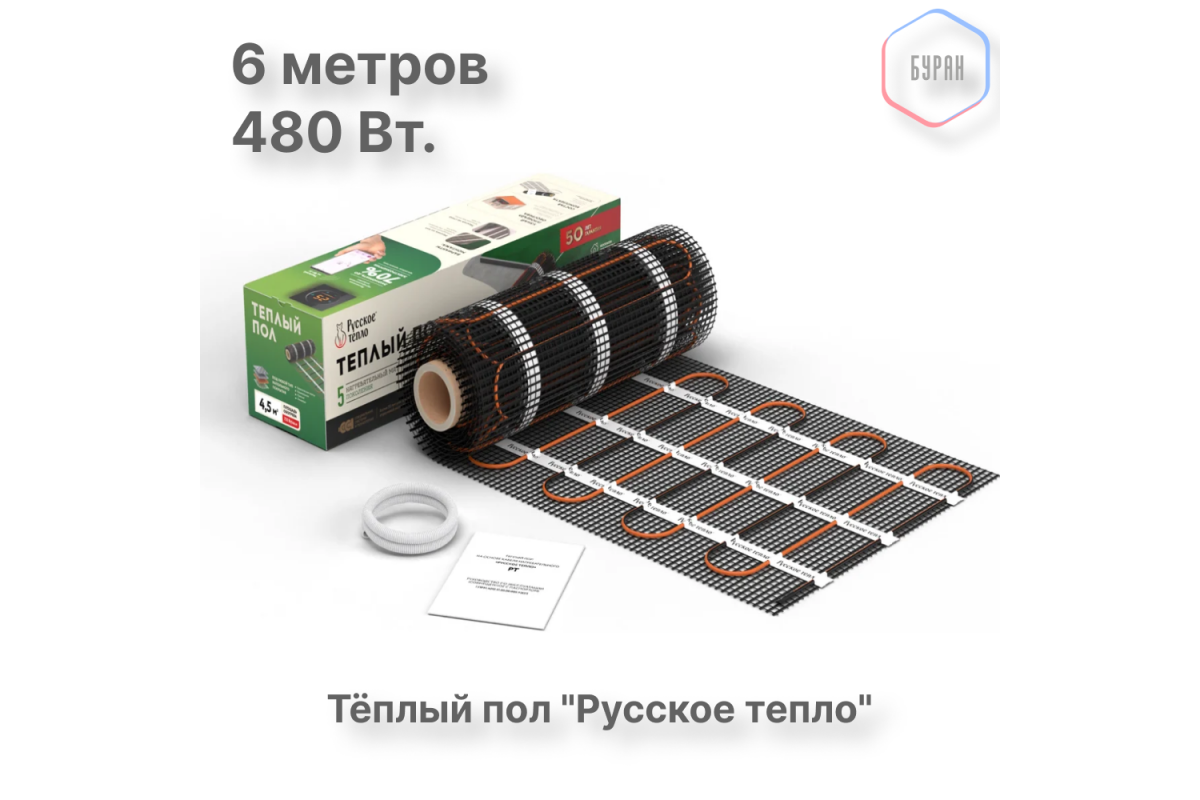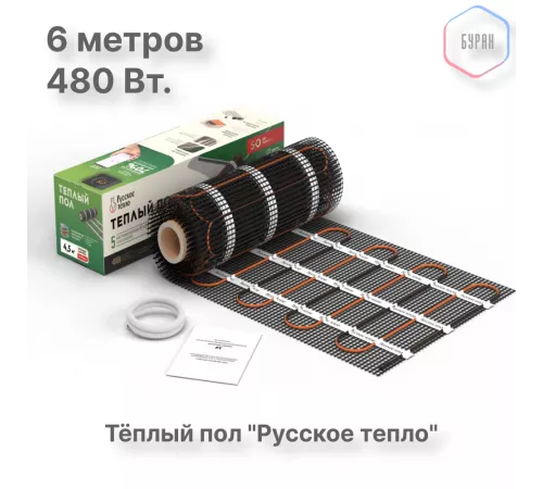 Нагревательный мат для теплого пола Русское тепло 3.0 м² 480 Вт