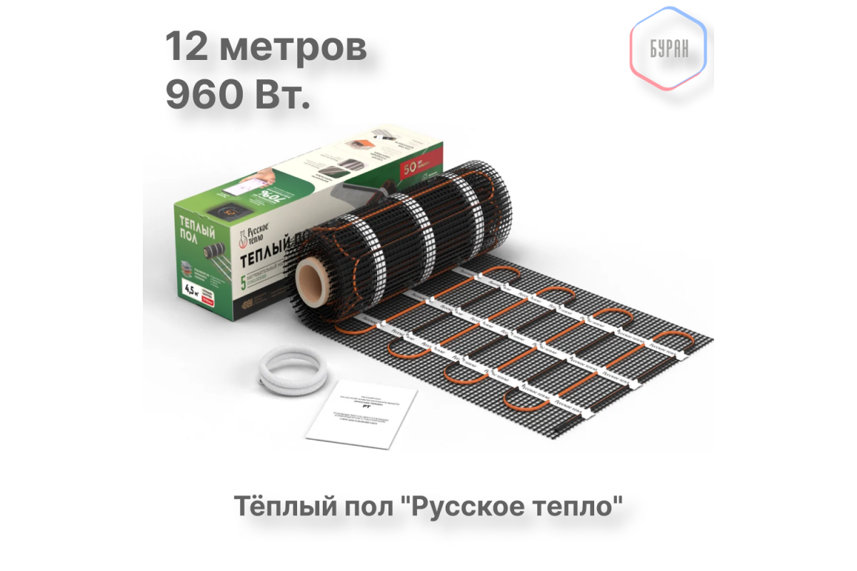 Нагревательный мат для теплого пола Русское тепло 6.0 м² 960 Вт
