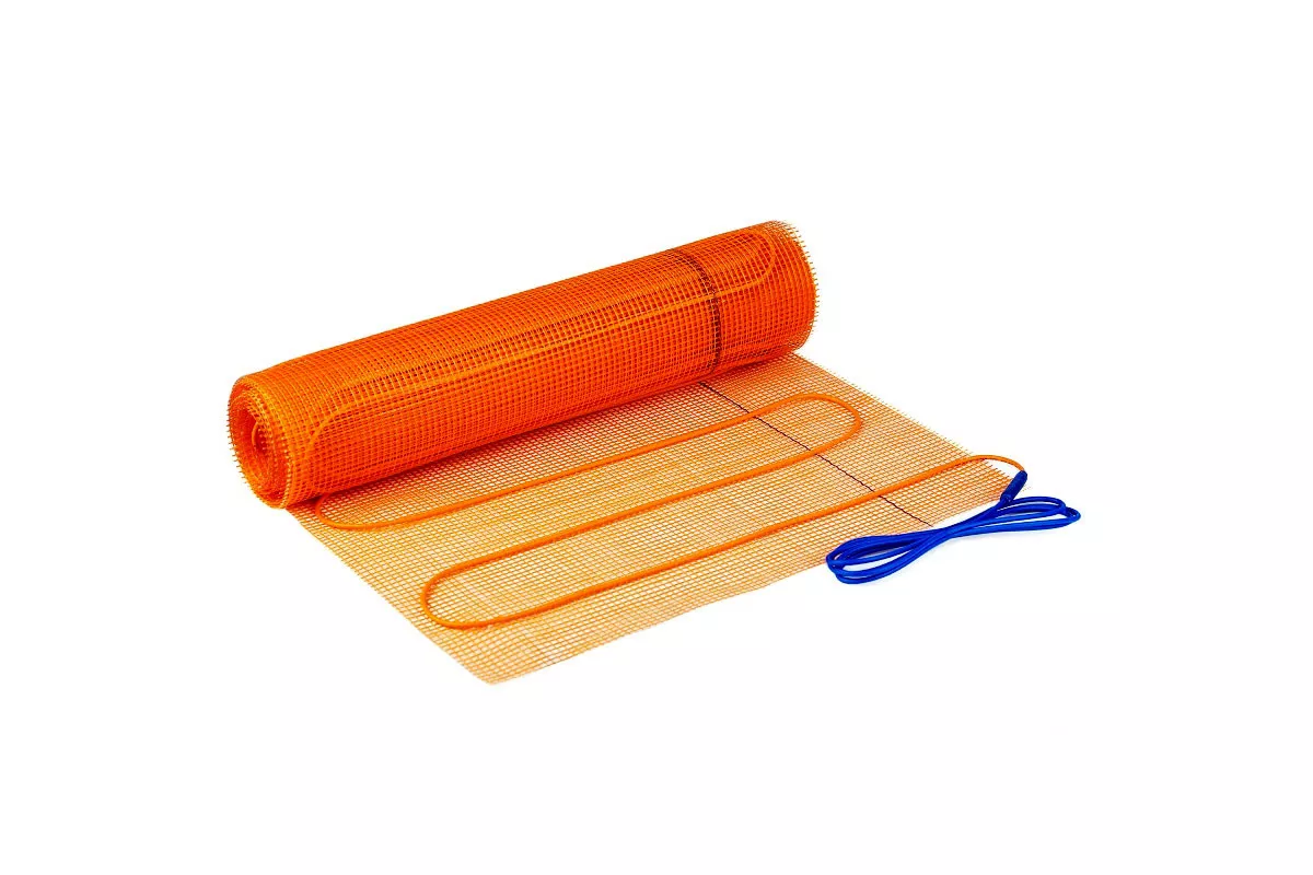 Мат оснащён двухжильным экранированным кабелем, закреплённым на стекловолоконной сетке с постоянным шагом укладки 10 см, что обеспечивает равномерный нагрев и упрощает установку. Благодаря тонкой конструкции, мат можно укладывать непосредственно в плиточный клей, без необходимости дополнительной стяжки.